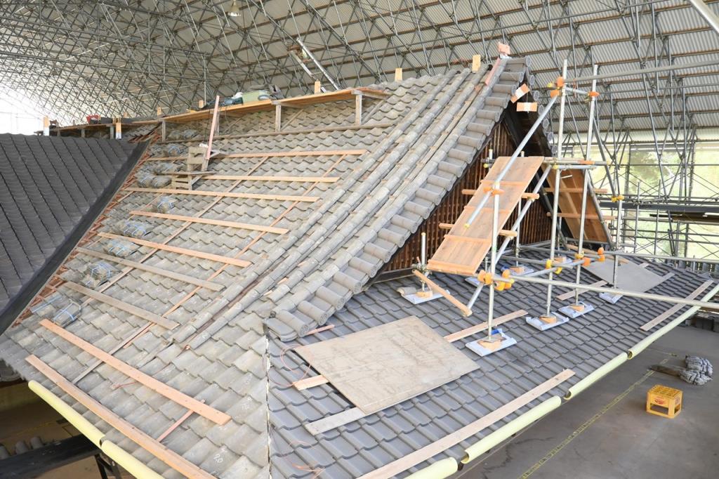文化財建造物の修理工事では、必ず建物の調査を行います。調査によって、過去の建築様式や技法、修理の痕跡などが分かるため、非常に重要な作業となります。旧織田屋形では、表の玄関には非常に立派なケヤキの木が梁などに使われていることが分かりました。一方、普段人の目に触れない建物の裏側では、細い木が使われていることが分かりました。