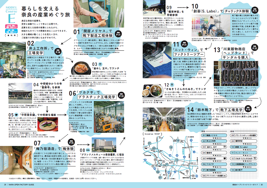 「奈良オープンファクトリーガイド」の5つのモデルコースを掲載しています。
