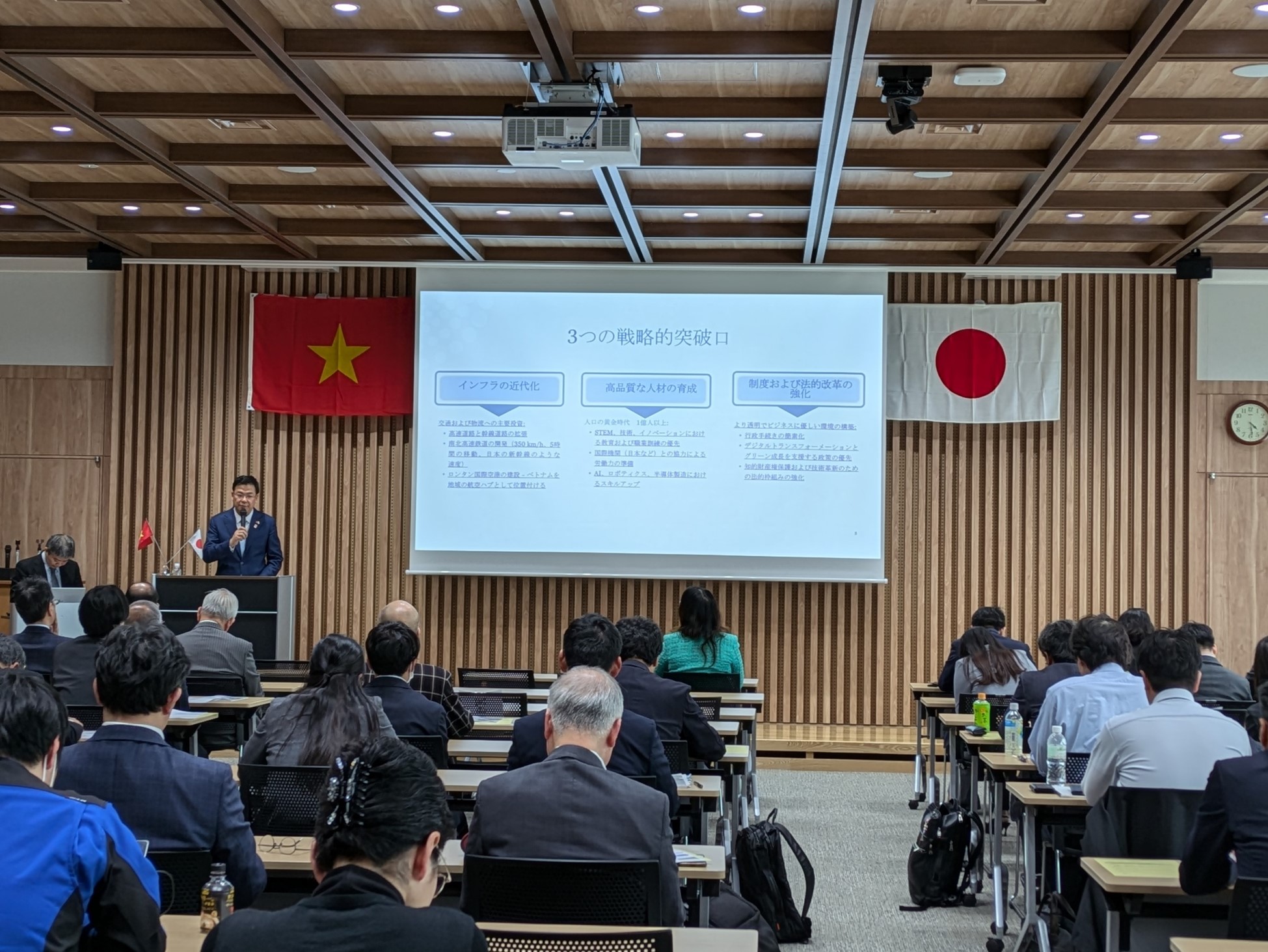 4月11日、ファム・クアン・ヒエウ駐日ベトナム大使が奈良県を訪問し、下記のとおり講演を行いました。当日は県内企業・経済団体関係者をはじめ、90名以上の方にご参加いただき、講演後には名刺交換会を行いました。