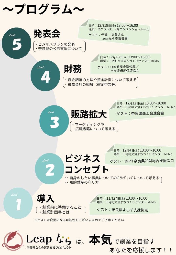 お申込み時にご提供いただいた情報は、本セミナーの運営のために使用いたします。また、必要に応じて、Leapなら支援機関と共有させていただく場合がございます。あらかじめご了承ください。
