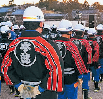 消防団員約300人および消火担当者が集合し、出発式を行います。