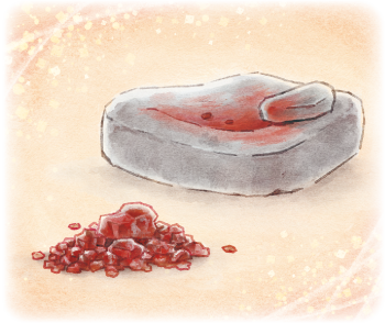 歌に「赤土」「丹」とあるとおり、硫化水銀は赤色の鉱石ですが、そこから採れる水銀は銀色です。水銀は常温で凝固しない唯一の鉱物であり、その不思議な銀色の液体は、不老不死の仙薬の原料と信じられ珍重されました。隋・唐代の辰州(現在の湖南省あたり)で多く産出されたことから「辰砂(しんしゃ)」とも呼ばれるようになったといいます。現代では水銀が猛毒であることは周知されていますが、古代においては、漢方薬や顔料、防腐剤などとして広く利用され、産出地に莫大な富をもたらしたそうです。