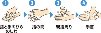 嘔吐物などの処理後、拭き取り掃除後、調理前、食事前、トイレの後、オムツ交換など、ウイルスを広げないためには、しっかり手洗い(石鹸を使い30秒ぐらいもみ洗いし、流水で流す)をして、手からウイルスを落とすことが大切です。