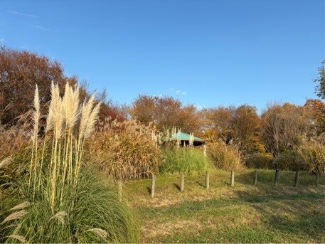 ススキやパンパスグラスも、まだ、ご鑑賞いただけます。「ススキの丘/中央エリア」