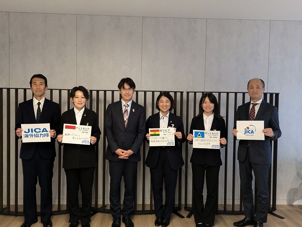 2024年11月15日、この冬に出発予定のJICA海外協力隊の村井さん、河村さん、梅本さんが山下知事を表敬訪問されました。