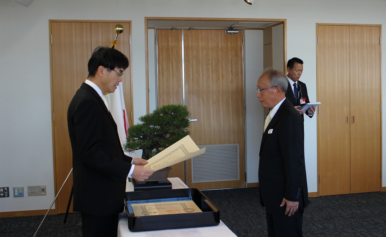 2025年12月9日 令和7年秋の叙勲・褒章および第45回危険業務従事者叙勲伝達式 12月9日に、令和7年秋の叙勲・褒章および第45回危険業務従事者叙勲伝達式を執り行い、勲記や章記を知事から受章者の皆様へ伝達しました。 永年にわたり社会の発展に貢献され、栄誉に浴されましたことに対し、心からお祝いを申し上げ、そのご功績にあらためて敬意を表します。 2025年12月9日