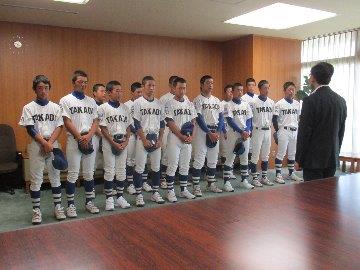「東アジアU-15ベースボール宮崎大会2018」に出場する「大和高田リトルシニア」が表敬訪問のため来庁されました。