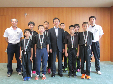 第38回全日本バレーボール小学生大会全国大会(男女混合の部)に出場する「うた少年少女クラブ」が表敬訪問のため来庁されました。