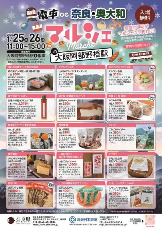 奥大和の特産品などを販売する「電車de奈良・奥大和マルシェ in 大阪阿部野橋駅」を開催します。