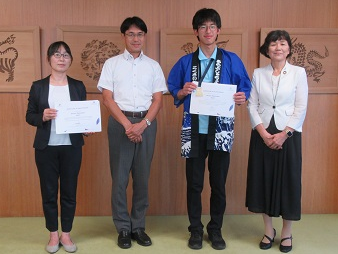 2025年8月20日 「国際化学オリンピック」金賞受賞者の知事表敬訪問 アラブ首長国連邦・ドバイで開催された第57回国際化学オリンピックにて金メダルを受賞した奈良工業高等専門学校の学生・学校関係者が山下知事を表敬訪問されました。 受賞者である渡邉周平さんから受賞の報告があり、山下知事は今回の受賞は奈良県民として誇りに思うとお祝いの言葉を述べました。 2025年8月20日