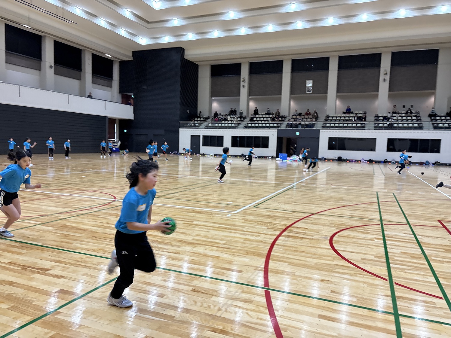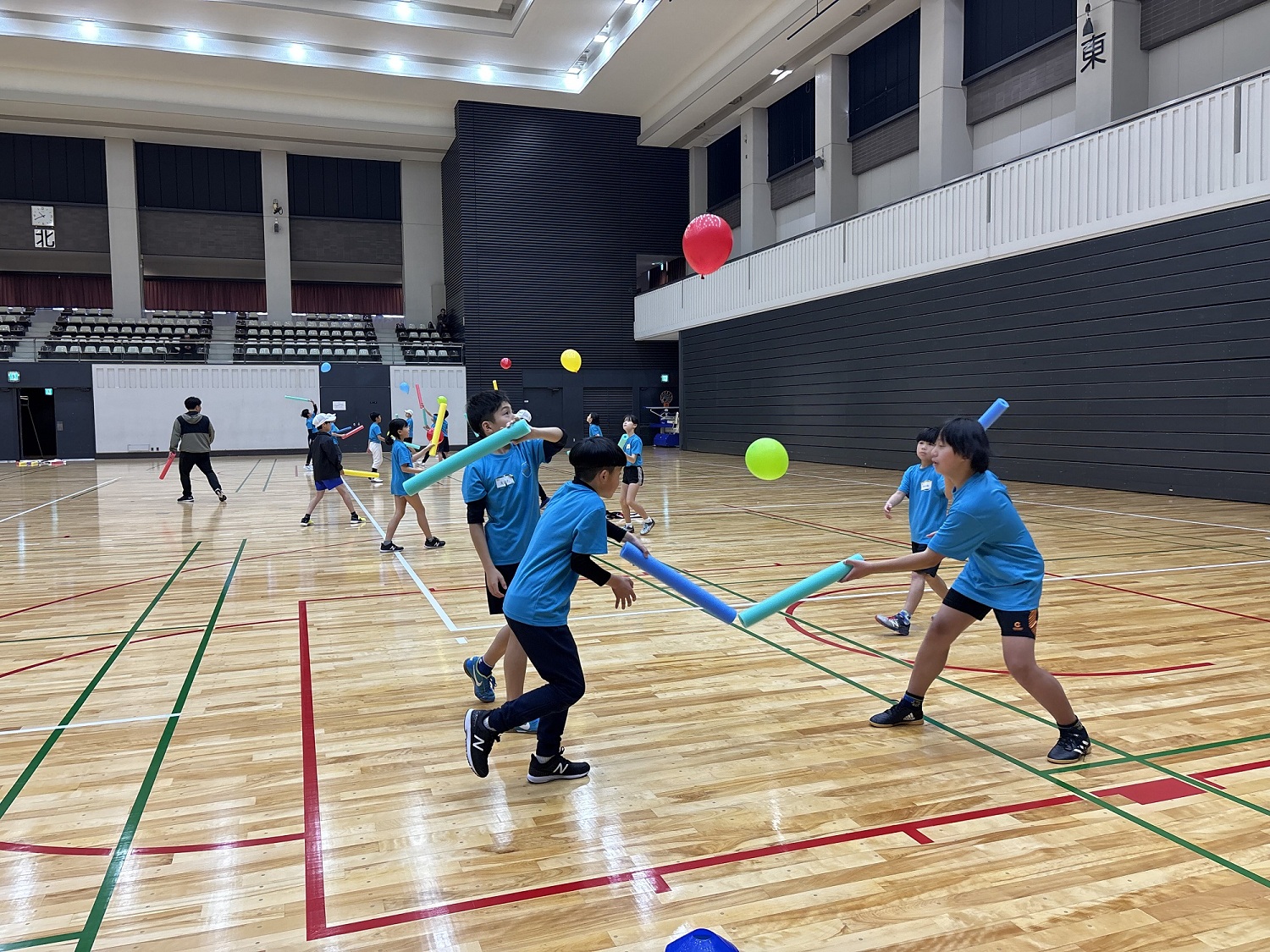 今回は、実技トレーニングを実施し、「倒す・押す・振る」をテーマにどのようにすればボールを遠く投げられるか、相手の力に負けずに最大のパワーを発揮できるか、ポールと風船を使ってペアの子と長くラリー続けるかなどを学ぶトレーニングを行いました。